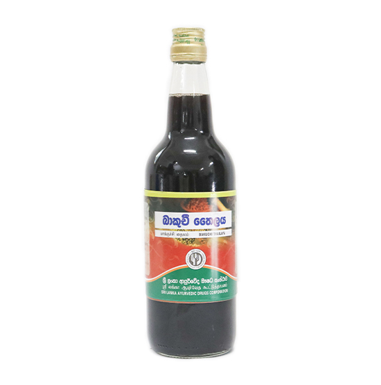 Bakuchi Thailaya is a classical Ayurvedic medicated oil prepared using Bakuchi (Psoralea corylifolia). It is traditionally used to support healthy skin and natural pigmentation. Commonly applied externally, this oil is beneficial in managing skin conditions such as white patches, discoloration, and other chronic skin disorders, helping to cleanse the skin, promote renewal, and improve overall skin tone.